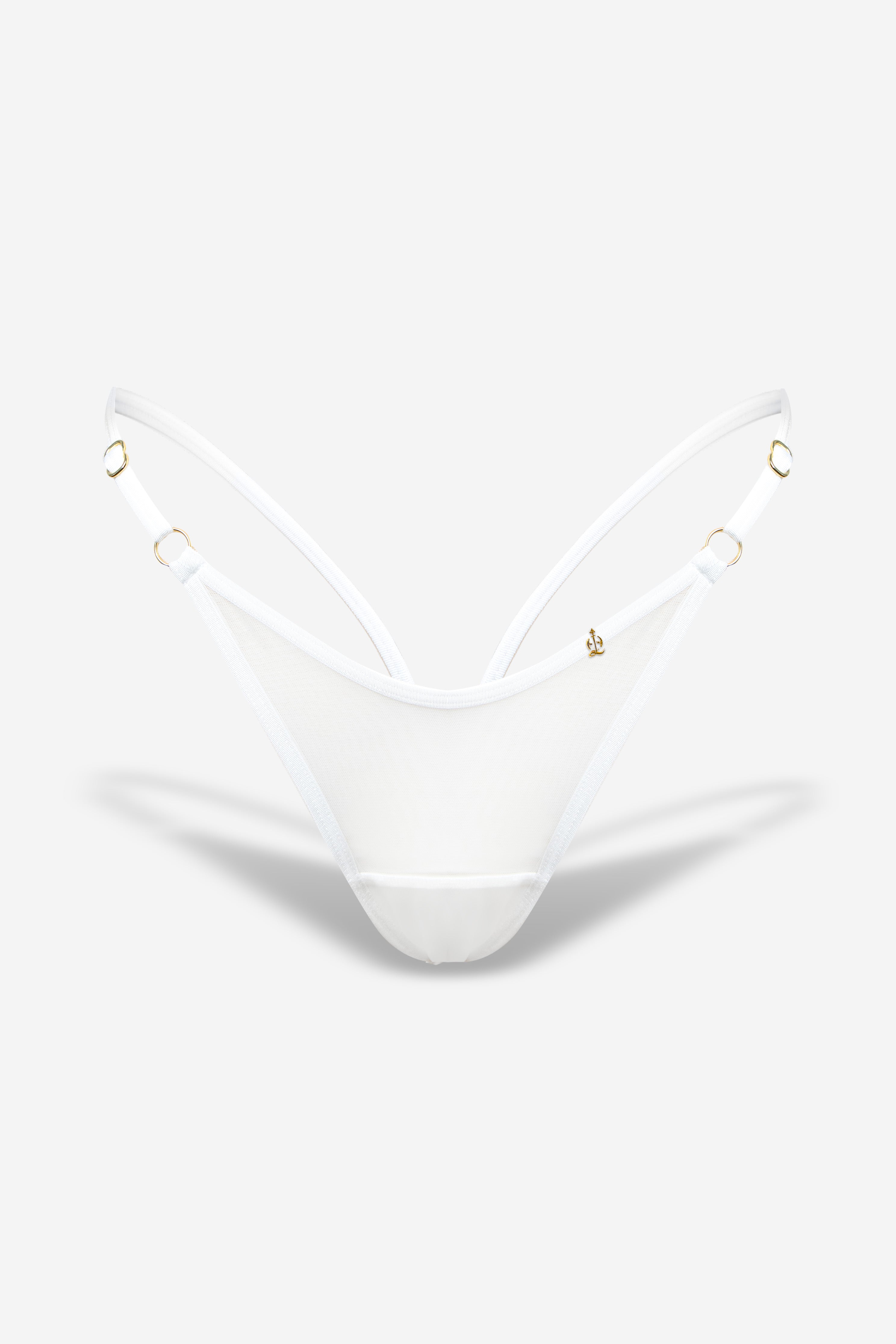 Carmen String is a minimalist masterpiece crafted from sheer premium surplus mesh with adjustable side straps, soft petersham-style elastication and 18K gold-plated washable zamak components with delicately sewn branded logo. Ethically handmade in-house, each piece promises longevity for an everlasting love affair.