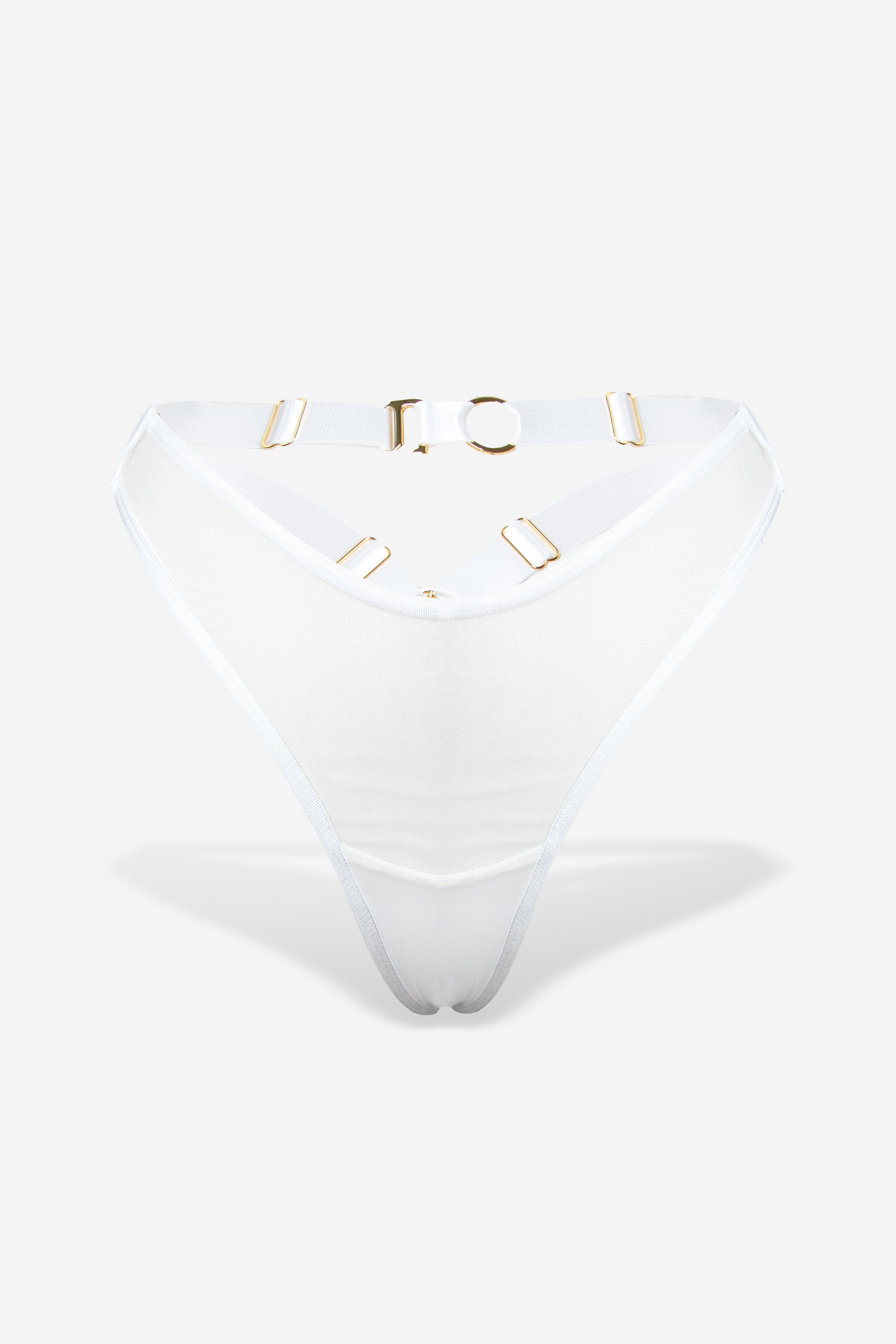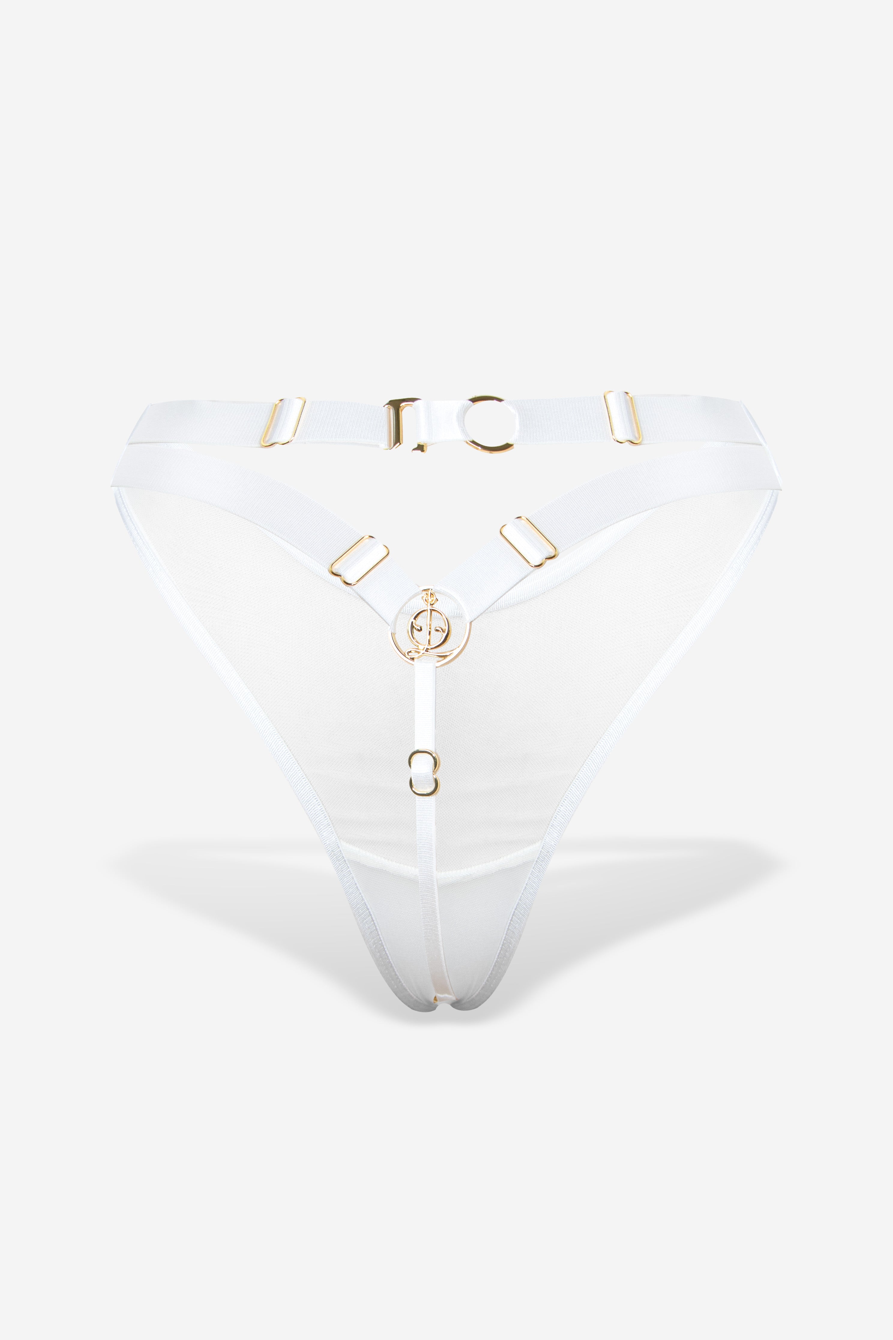 Carmen Thong is a lavish fusion of bold design and craftsmanship—its tantalizing skimpy front, wide double straps, signature logo and refined hook-back detail offer allure and adaptability, fully adjustable for a personalized fit and crafted from sheer surplus mesh with silky petersham elastication. Ethically handmade in-house, each piece promises longevity for an everlasting love affair.