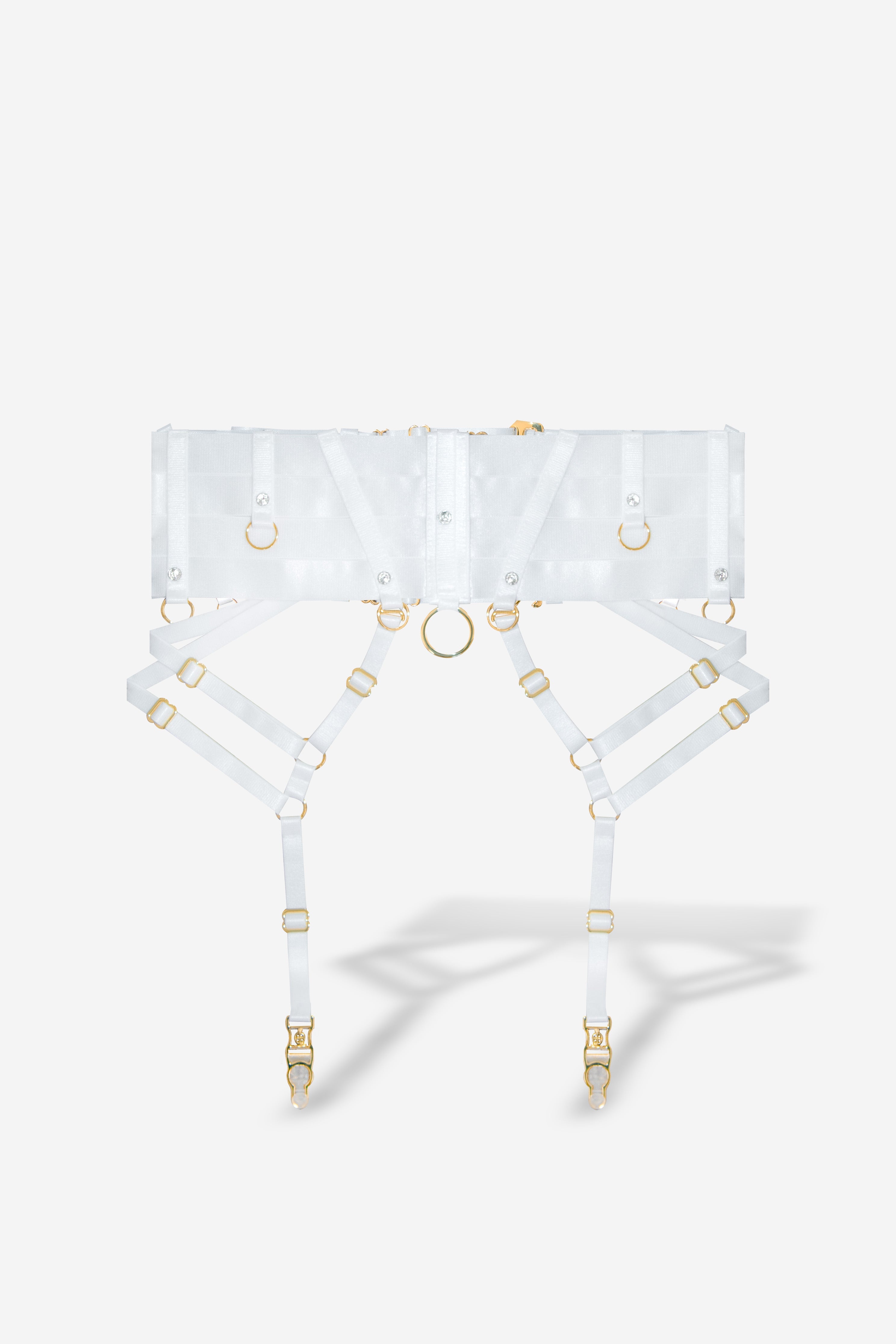 Harlow Convertible Belt is a versatile statement piece—wear it as a suspender belt or standalone accessory, with multi-layer, fully adjustable elastication, cross-contour panelling, signature suspender clips and removable straps, all adorned with hand-set Swarovski Xirius Lochrose crystals and 18K gold-plated hardware. Ethically handmade in-house, each piece promises longevity for an everlasting love affair.