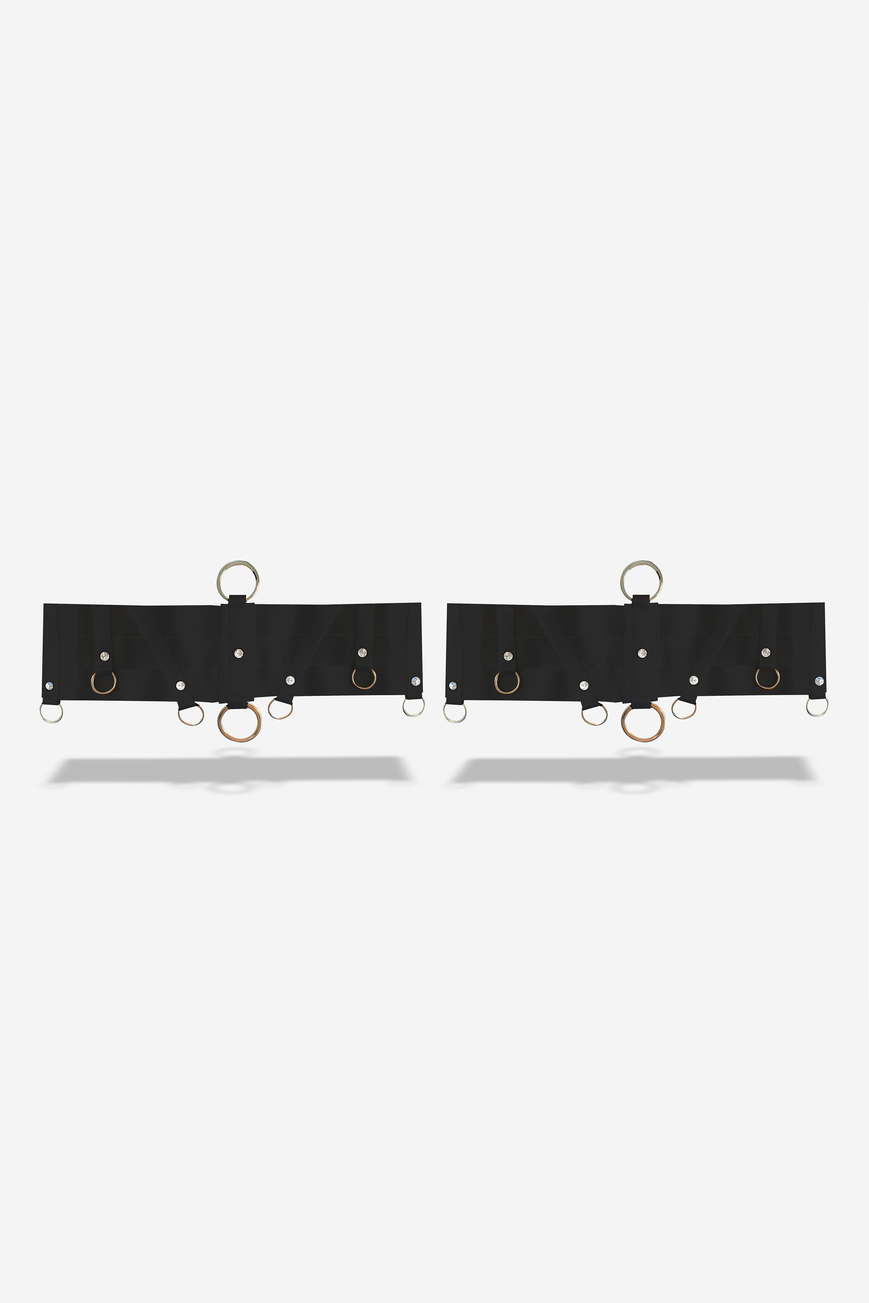 Harlow Garters feature a multi-layer elastic design with cross-panel detailing, hand-applied Swarovski Xirius Lochrose crystals and scattered ring accents for a couture look, fully adjustable and finished with our signature 18K gold-plated zamak logo. Ethically handmade in-house, each piece promises longevity for an everlasting love affair.