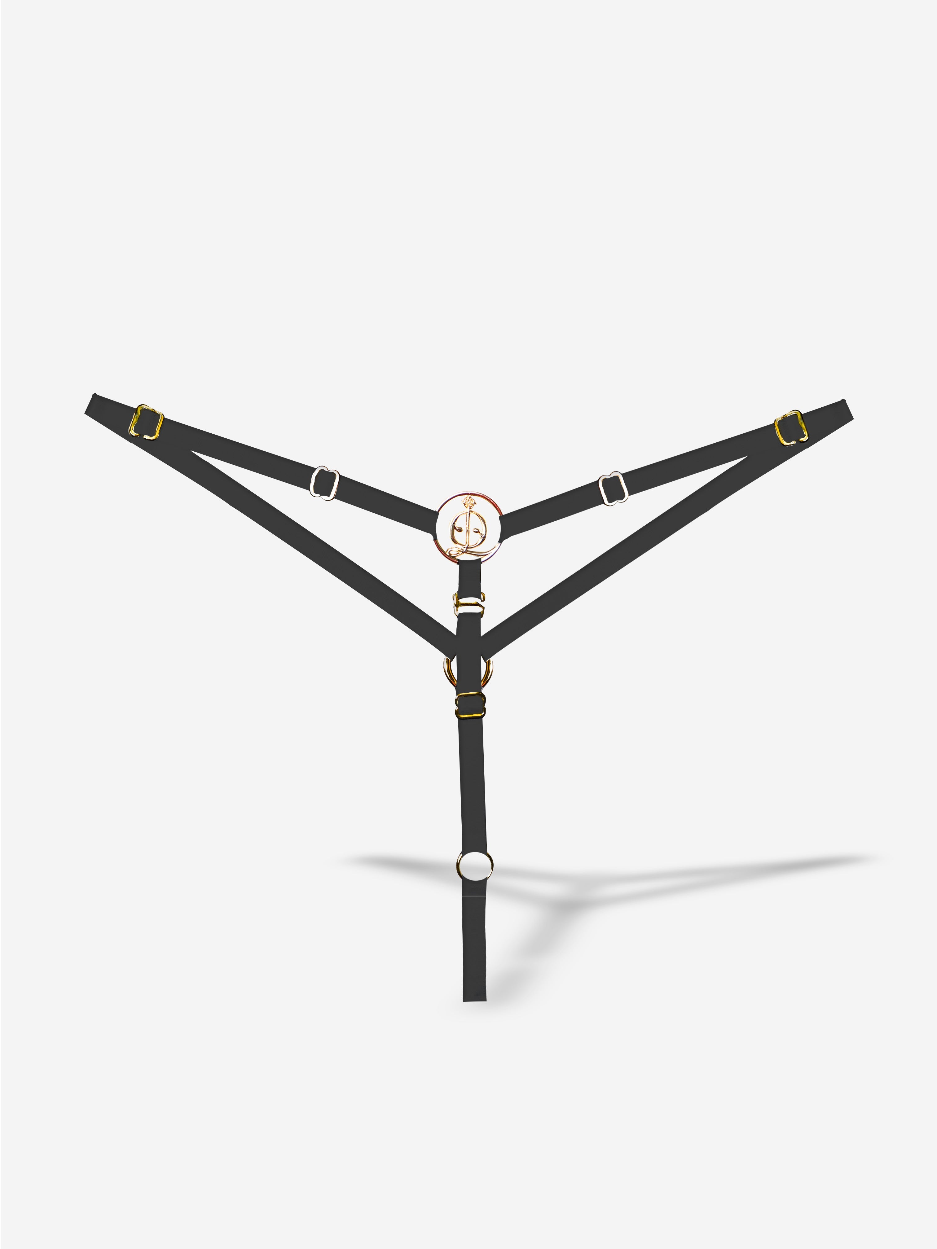 Kira Strap Brief is a bold harness-style micro string igniting hardcore romance with a daring swan-hook front closure, playful ring accent over all the right places, and a gleaming 18K gold-plated signature logo. Fully adjustable for a flawless fit, it embodies the Cancer woman’s fierce passion and leaves nothing to the imagination. Ethically handmade in Europe, each piece promises longevity for an everlasting love affair.