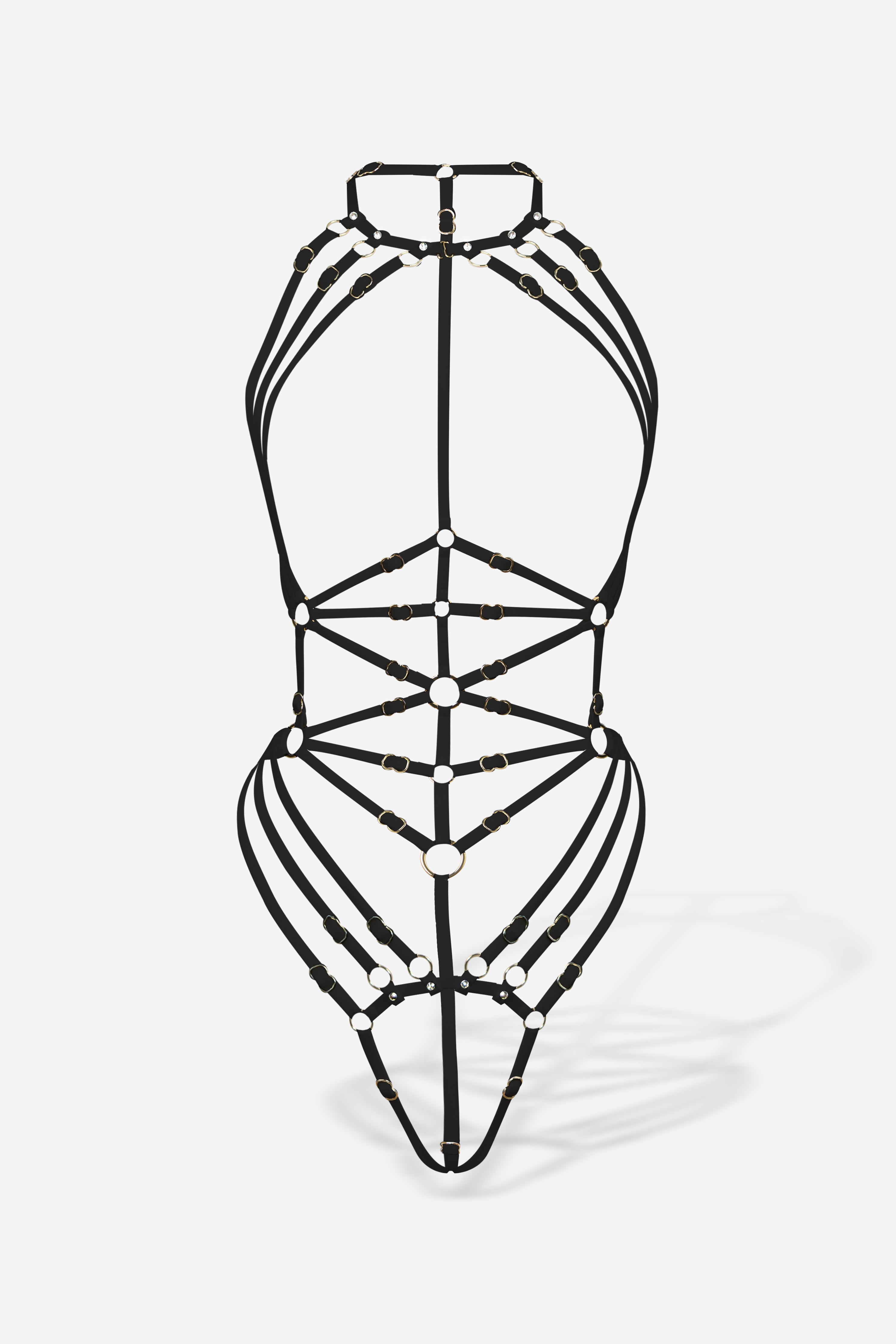 Mona Body is a masterpiece of form—soft, fully adjustable elastication, 18K gold-plated hardware and hand-set Swarovski Xirius Lochrose crystals add exquisite sparkle, with a detail-rich back and minimalist front for versatile, sophisticated styling. Ethically handmade in-house, each piece promises longevity for an everlasting love affair.