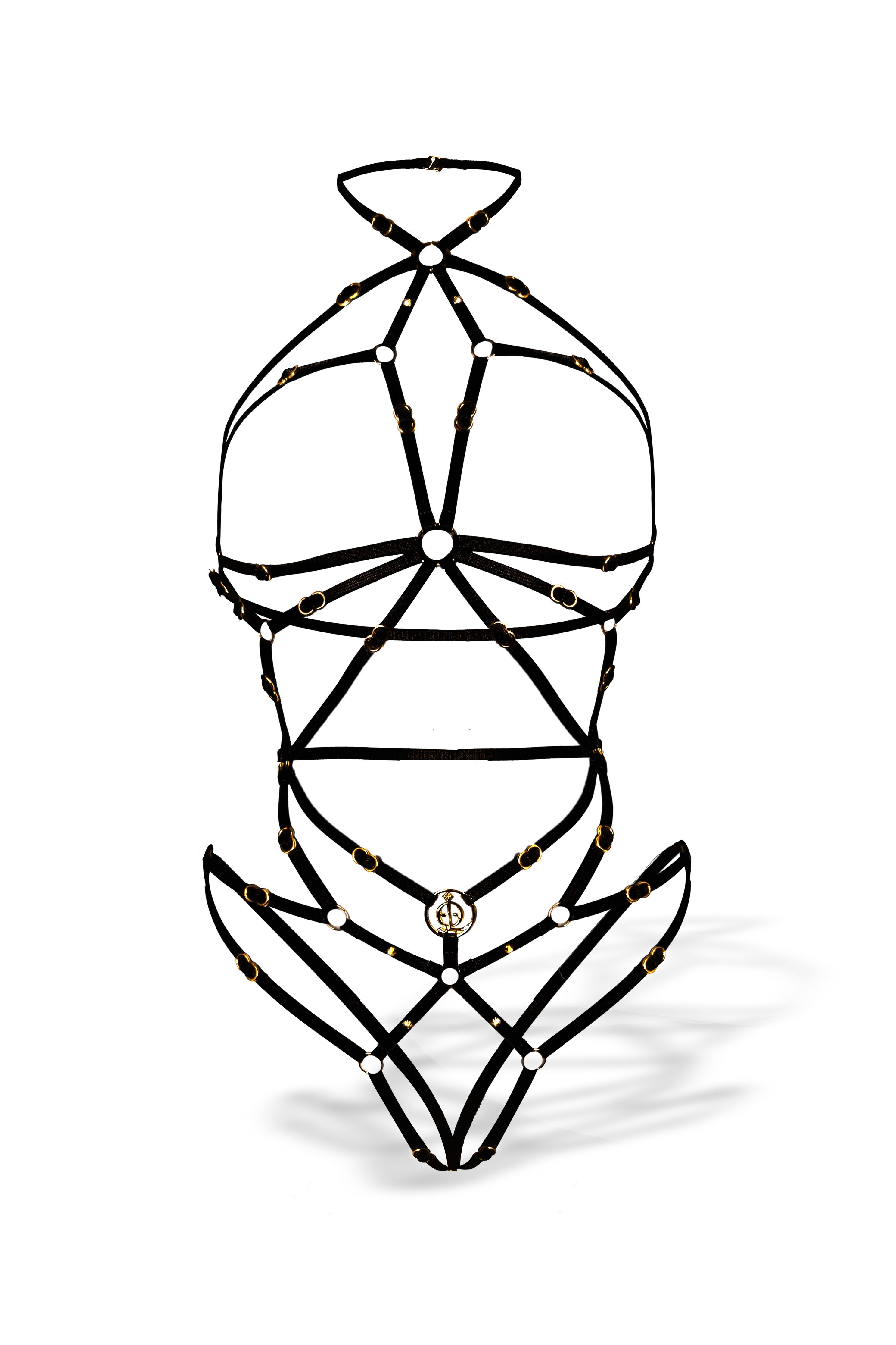 Petra Body is a celestial-inspired harness that sculpts the feminine form with silky-soft, fully adjustable elastics, illuminated by 18K gold-plated hardware, signature logo accents and hand-set Swarovski Xirius Lochrose crystals. Ethically handmade in-house, each piece promises longevity for an everlasting love affair.