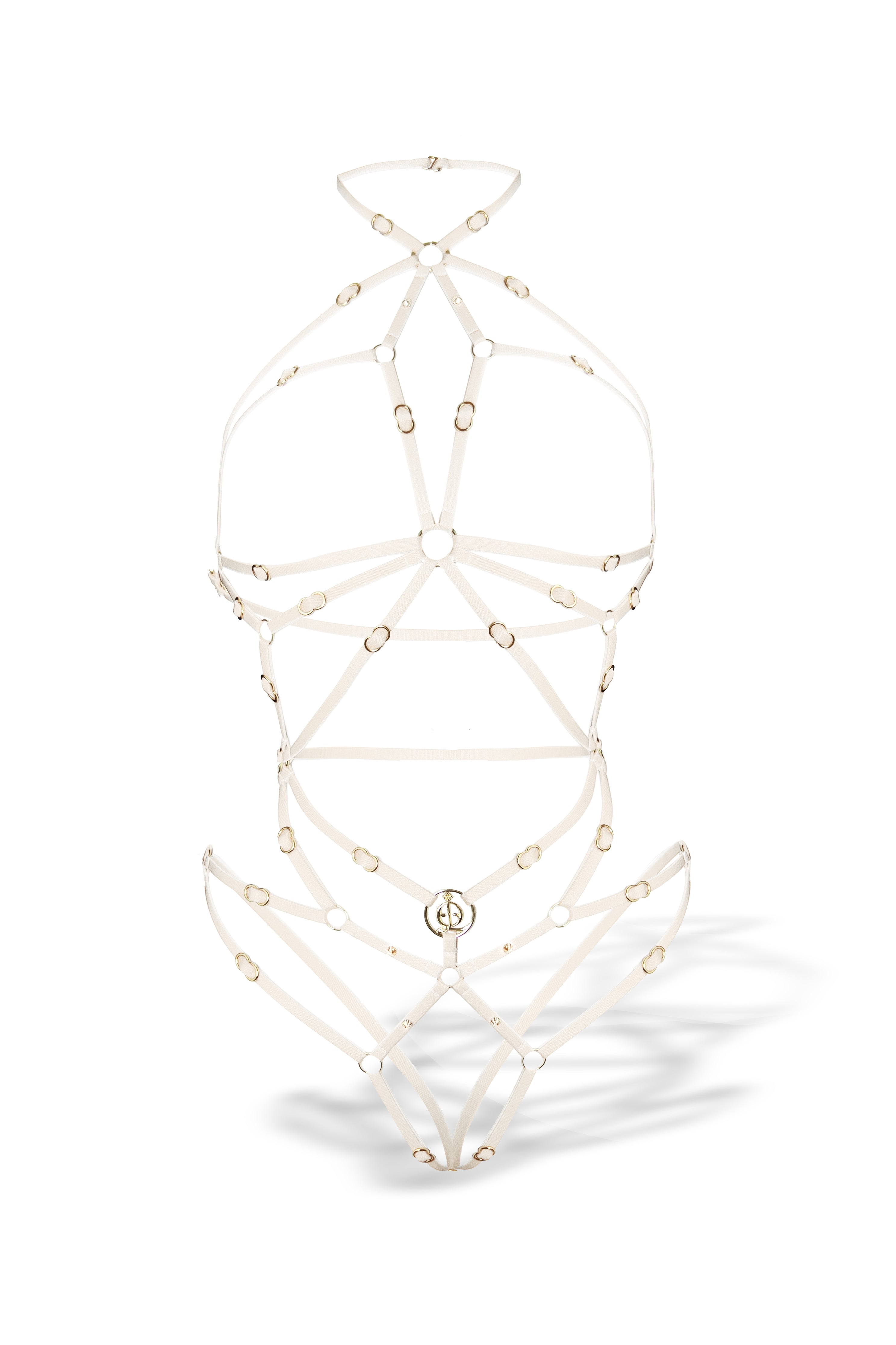 Petra Body is a stunning fusion of celestial inspiration and luxury—silky-soft adjustable elastics contour the feminine form with elegant precision, paired with 18K gold-plated components, signature logo accents and hand-sewn Swarovski Xirius Lochrose crystals. Ethically handmade in-house, each piece promises longevity for an everlasting love affair.